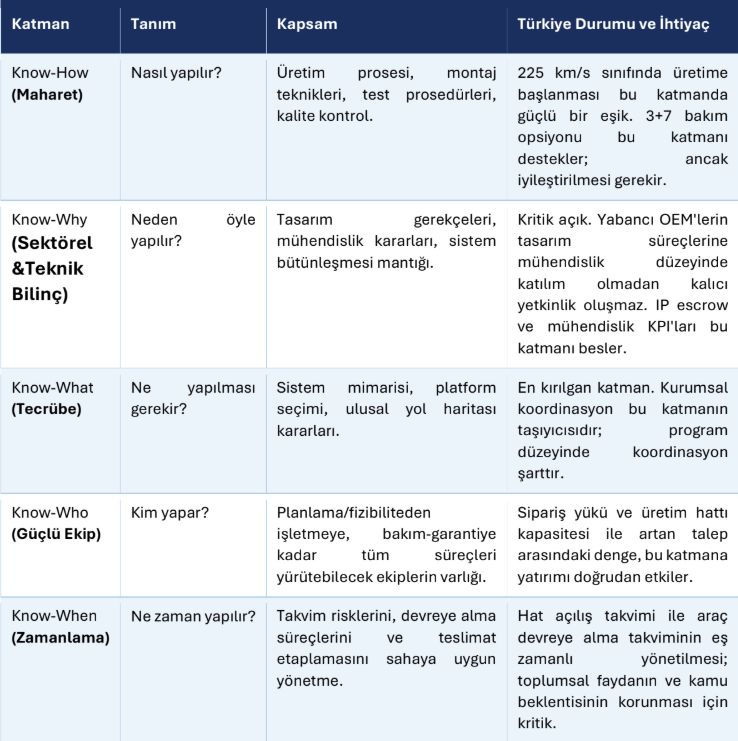 Geçmişteki deneyimlere baktığımızda, Türkiye 2000’li yıllarda ortak üretim girişimlerinden dersler çıkarmış. 2017 yılında yapılan yüksek hızlı tren alımında teknoloji transferi maddesi eklenmiş olsa da, bu süreçte rekabet ve sözleşme yapısı yeterince desteklenmediği için etkileri sınırlı kalmıştır. Ülke, geçmişte Bombardier, Heiterblick ve Talgo gibi stratejik fırsatları kaçırmıştır. Bu durum, gelecekte benzer hataların tekrarlanmaması adına dikkatle değerlendirilmelidir.