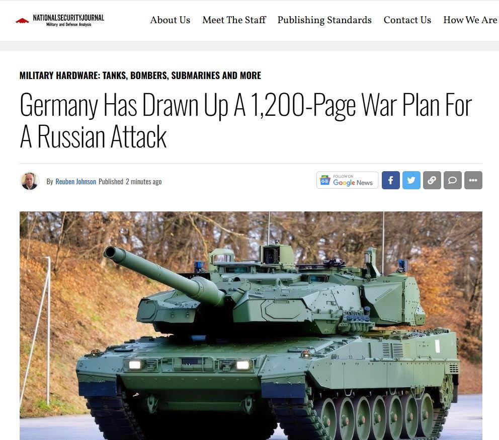 ABD merkezli yayın organı National Security Journal (NSJ), “Germany Has Drawn Up a 1200 page War Plan for a Russian Attack” (Almanya, Rusya’nın olası bir saldırısına karşı 1200 sayfalık bir savaş planı hazırladı) başlığıyla bir analiz yayınladı.