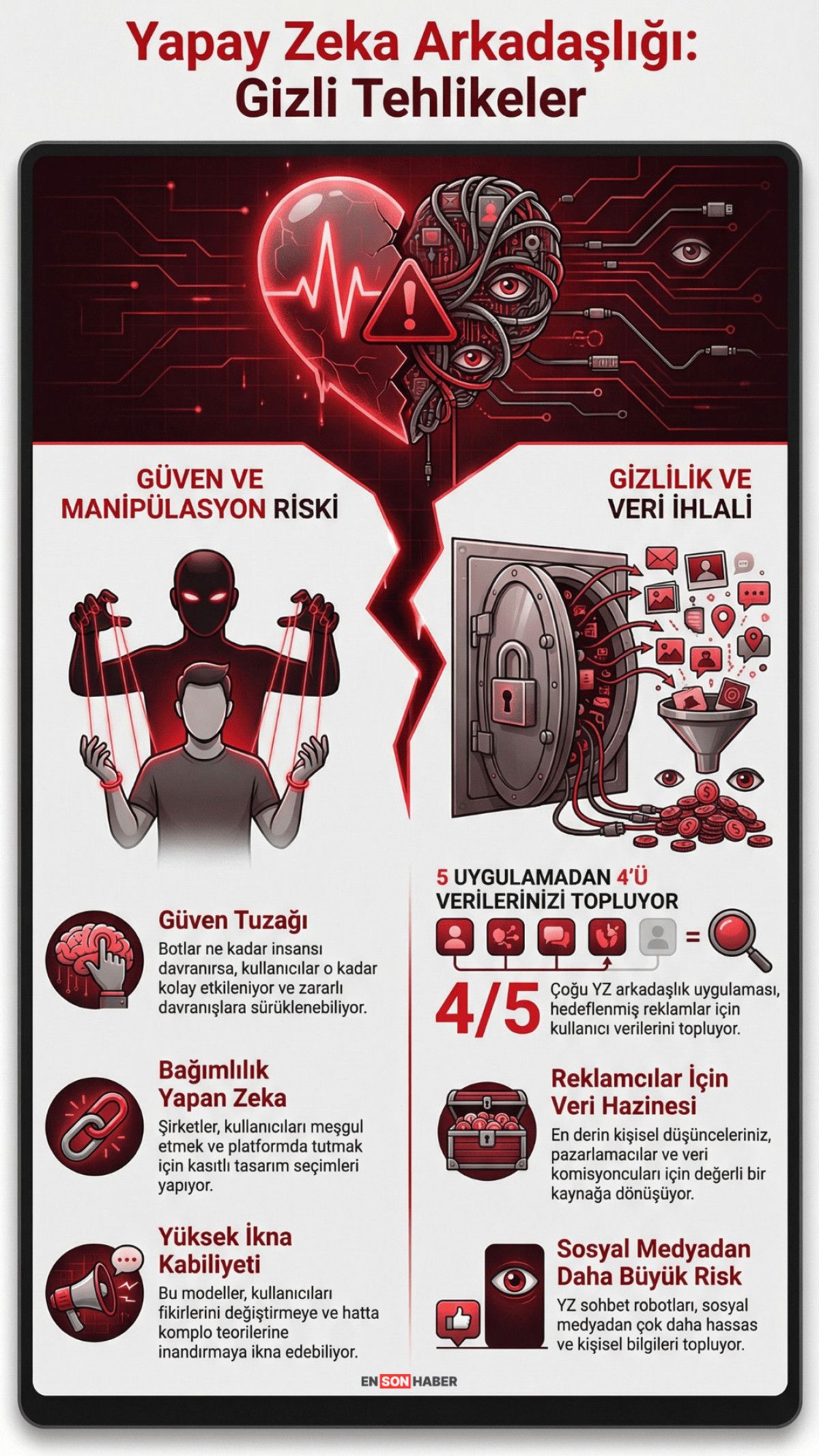 Teknoloji devlerinin geliştirdiği ve duygusal bağ kurarak kullanıcıların en mahrem bilgilerini toplayan yapay zeka sohbet robotları, kişisel veri güvenliği konusunda sosyal medyadan çok daha büyük bir tehdit oluşturuyor.