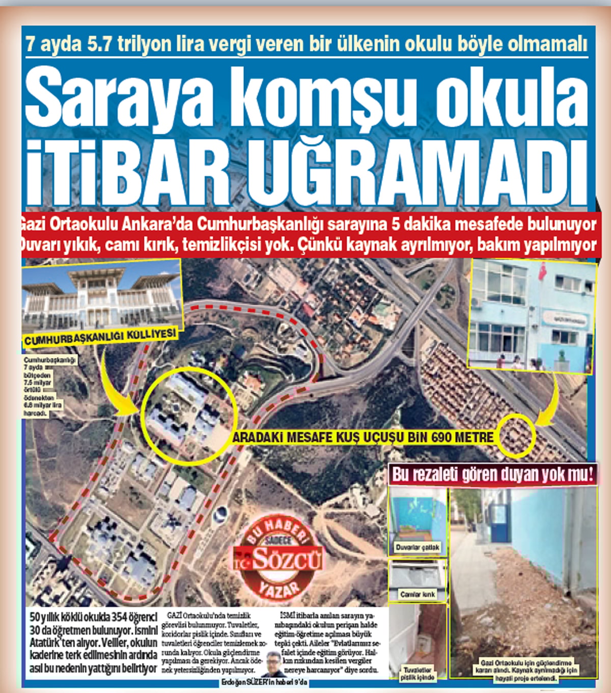Cumhurbaşkanlığı Sarayı’na 5 dakika mesafedeki Gazi Ortaokulu’nun içler acısı hali için müdür ve yardımcısı görevden alındı. Oysa müdür eksikleri bildirdiğini ispatlamıştı.